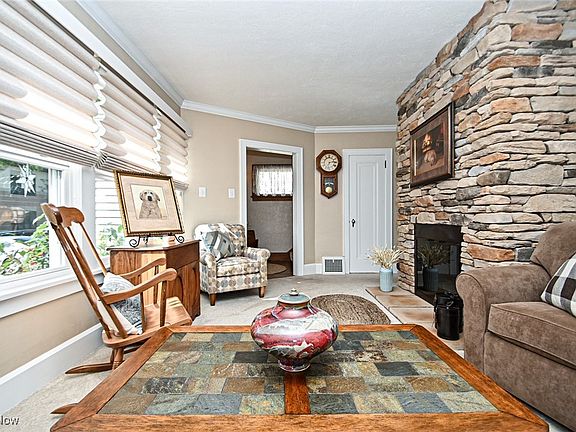 Well maintained and nicely updated, move in ready Harter Heights colonial, across the street from Harter Elementary School. Charming vestibule with ceramic tile floor and beadboard ceiling. Hard wood floor entry opens to the cozy living room that features a stone fireplace, a ceiling fan and is carpeted. There is an office/family room with a wall fireplace on the first floor, that could be another bedroom. A sitting room on the main floor with a closet could be used as a fourth bedroom. The kitchen has been updated offering quartz countertops, stone and glass backsplash, white shaker style cabinetry, a pantry, and is fully applianced. The adjacent dining room gives access to the covered back porch, and fenced back yard. The first floor updated full bathroom also offers a laundry. The second floor has three bedrooms and a spacious updated full bathroom. Immaculate  yard and landscaping, a fenced back yard and a two car detached garage complete the outdoor space.