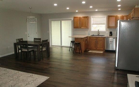 - Shower, Open Floorplan, Dining/Living Room Combo, Kitchen/Dining Room Combo, Breakfast Bar, Custom Cabinetry, Eat-in Kitchen