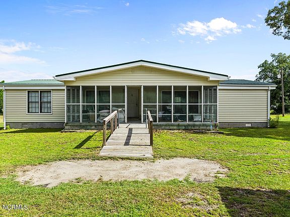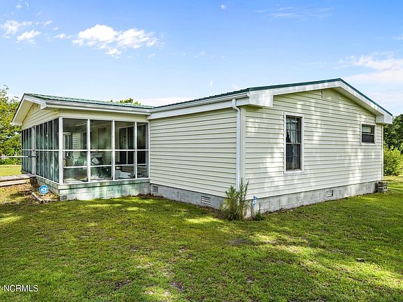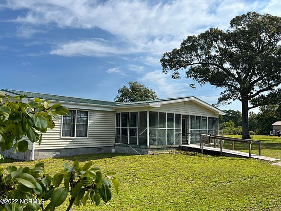 WATERFRONT FARM! Country Livin at its finest! 5.7+- acres on Cales Creek on the White Oak River. 3BD/2BA manufactured home (on a permanent foundation) is in fantastic shape but dated, sporting a nice metal roof, rear deck/front porch, walk in shower, stick-built detached garage, and newer HVAC. This has been an active farm since the 50's, so the farmer planted....Figs, blueberry, raspberry, pear, and beautiful pecans! So keep it as a hobby farm or give yourself a view and add a dock, in front of building your new dream home. Live in the 3bd/2ba while you build it., then rent the ''old'' home after you build YOUR DREAM HOME!