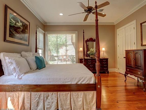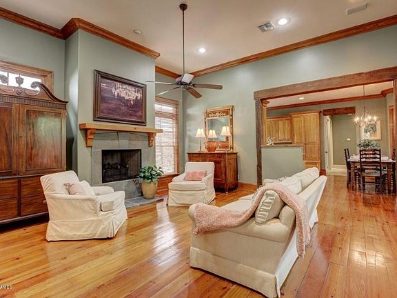 Picture yourself living in this beautiful home on one of the widest, shadiest streets in River Ranch! Across the street from a bucolic greenspace, this graceful, comfortable home has an appealing, open floor plan and numerous windows which bring so much natural light while offering big beautiful views of the friendly and relaxing outdoors. The view as you walk in is stunning! The dining room is a treasure! Antique pine floors grace all of the community spaces and bedrooms! Feel the smooth flow as you move from space to space. The three bedrooms all have their own full bath and the master bath is particularly large, which pairs perfectly with the generous master bedroom, with three big windows looking out to the patio.