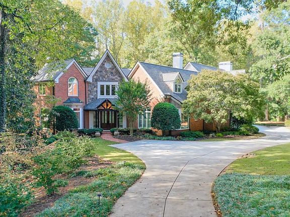 Exceptional setting on the most beautiful cul-de-sac in coveted Atlanta Country Club Estates. Extremely private home has show stopping curb appeal. It's located in the top school district of Sope Creek Elementary/Walton High and within walking distance to neighborhood McFarlane Park and Chattahoochee River trails. The newly replaced winding level drive leads to a charming stone and wood beam entrance which opens to an expansive foyer with views out to the gorgeous Gunite salt water pool and brick patio. Over 10' tall ceilings gives the main level a grand feel as you enjoy the 2-story great room with a fireplace flanked by custom bookshelves and 2 separate sitting areas looking out to the pool and open to the fireside breakfast room. Cathedral ceiling renovated kitchen has high end stainless appliances and large walk-in pantry. Steps away is the vaulted ceiling sunroom wrapped with insulated windows w/screens enclosed for year round enjoyment of the outside entertaining areas. Primary on main level has 2 separate walk-in closets, spacious bath with individual vanities/sinks, jetted tub, shower, and beautiful stone floor/counters. 1st floor office is convenient but quiet, oversized dining room is grand and inviting. Large laundry room and perfect space for a mudroom, formal and casual powder rooms and 3-car garage complete this level. Double stairway leads to 2 en-suite bedrooms w/renovated baths. Loft area overlooking the breakfast room is perfect for games or study. Huge fireside vaulted room with walk-in closet and renovated bath can function as a 3rd bedroom or upstairs family room. Terrace level has another game/media area with wet bar, light-filled guest room, full bath and additional sunlit room w/fireplace. 3/4 of the home has top of the line windows which provide great insulation and views to the expansive brick patio and wooded level yard - great area for sports and play! This is an unusual opportunity that rarely comes in this neighborhood - grand estate home in updated, move-in ready condition on almost 1-1/2 acres level lot.