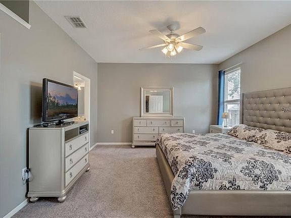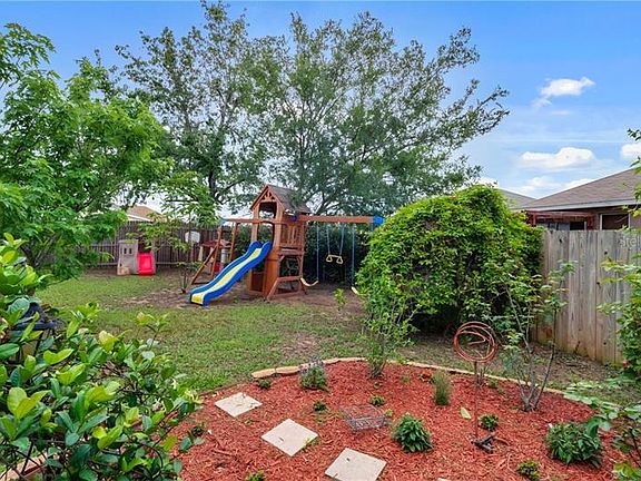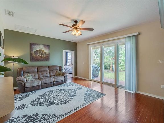 Priced to Sell!! Upon entering you will be delighted with its walnut wood laminate floors and high ceilings. You are greeted by a cozy living room or office space depending on your needs. The kitchen with its attached dinette area and breakfast bar is perfect for your needs. The stainless steel appliances including the double oven range, microwave hood, and new dishwasher will make meal preparation easy. You will be delighted with the large closet pantry with custom shelves. The spacious family room provides a great view of the rear yard and plenty of space to entertain. The master bedroom has an ensuite bathroom with dual sinks, soaking garden tub, separate shower and a custom walk-in closet. There are two additional bedrooms with fans and a hall bathroom. The washer, dryer and extra shelving can be found in the oversized garage. The fenced rear yard is perfect for family fun and enjoying friends with its covered deck, kid's play-set, and extra storage shed. The upgrades include new carpet with lifetime warranty, custom closet in master & kitchen, new windows in extra bedrooms & hall bathroom, and a new deluxe double pane slider for easy access to the rear yard. All of this is protected with a security system that includes a glass break sensor and carbon monoxide detector. As an added bonus, the home has boards ready to act as Hurricane window covers if needed! Seller is offering a one year home warranty. Horizon Oaks is conveniently located for all major roads, restaurants, shopping, and downtown festivities including First Friday, Busker, Classic Car parade and Music and just minutes from all the fun and festivals in America's Hometown of Eustis. Make your appointment today!