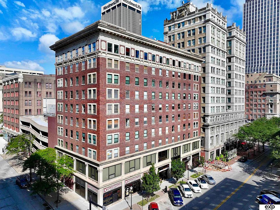 Live in the heart of downtown Omaha! Located on the fifth floor of the historic Regis building, this beautifully updated condo is one you will not want to miss. One of the first things you'll notice is the complete absence of traffic and street noise, creating a peaceful haven for you within walking distance of the Orpheum and Old Market. The kitchen features custom cabinets and granite countertops with newer appliances. In the spacious primary suite, you'll enjoy your huge walk-in closet and gorgeous spa-like bath with soaker tub. Washer and dryer conveniently located in the home will stay. Imagine the possibilities and make it your own today!