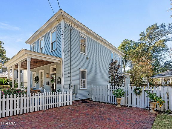 Located in a beautifully landscaped setting, this stunning double-lot home combines the elegance of historic charm with luxurious modern amenities. Featuring a fully renovated kitchen, family room, sunroom, and master bath, this home boasts over 100 years of character with contemporary design and craftsmanship. Renovated in 2022, all major living areas have been meticulously remodeled by Old School Builders, renowned for their work on the Olivero and Seabird projects. The kitchen was designed by Alice Evans of Dynamic Kitchens and showcased in Wilmington Magazine, featuring Signature brand Cabinetry, quartz countertops, Bertazzoni gas range, and a custom vented hood and built-in window seat. Flowing seamlessly with the reclaimed 100-year-old Heart Pine flooring to match the originals in the remainder of the home. New custom architect series Pella windows installed in the family room, sunroom, and master bath, with tall casements that open onto the back deck, bringing outdoor beauty and light to the generous family room. The sunroom boasts built-in custom benches and a new custom patio door. In the primary bathroom an elegant remodel features large-format tiles that mimic the look of teak and create an organic modern feel. The spacious shower is enclosed with streak-free treated frameless glass. The home preserves its original character, including fireplaces in the parlor, formal dining room, master, and guest bedrooms. A hand-painted ceiling fresco in the parlor adds an artistic touch, while original hardwood floors have been meticulously restored. Adding to the charm are a lighted Henredon built in cabinet in parlor, chandeliers, original clawfoot tub and dentil crown moldings atop soaring 11-foot ceilings. The fully fenced outdoors offers a wood deck, cobblestone patio and restored gazebo overlooking the garden and St. Mary's Basilica. Additional features Rinnai hot water heater, 2 car off street parking, and generous front porch.
