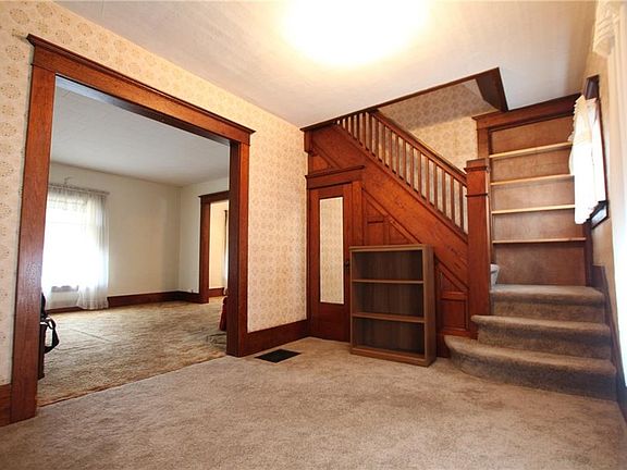 You should view this Solid & comfortable village home located on a nice neighborhood street in Carthage. The home has welcoming foyer, natural wood work, updated kitchen, high ceilings, 4 bedroom plus 1 and a half baths. Full basement AND Full walk up attic. Bonus room off the master. New carpet in foyer and 3 bedrooms. Full bath upstairs, Half down. This home offers a nice yard and has a large detached garage with WALK up stair access. Owner is motivated.