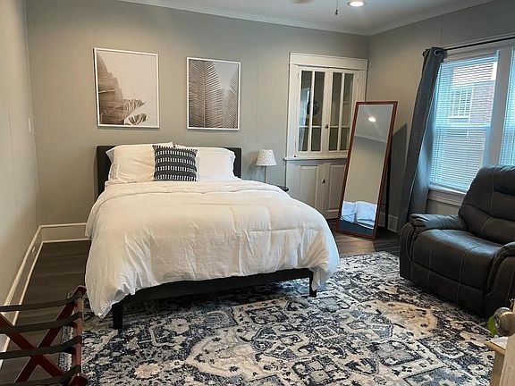 This adorable unit is the downstairs back unit of a triplex located in the Hollywood/Rose Hill Neighborhood. The neighborhood is a quiet nook located between Five Points and Rosewood Drive. The unit located close to retail, restaurants, grocery stores, and is two miles from the University of South Carolina. The unit itself is fully furnished. It features a full kitchen with full sized stove and oven, microwave, coffee maker and refrigerator. There is a bedroom with queen sized bed and TV, fully function bath, office/dining area, and playing into the Hollywood neighborhood, a theater room with two oversized recliners and large television. There is a small front porch with table, perfect for cocktails on nice evenings. Off Street parking is available behind the structure, and the back area is fenced on three sides. Pets are allowed with an additional deposit. The owner is looking for a term of at least one month, but longer would be preferred. The lease rate includes power, water/sewer and internet access. Pets are allowed with an additional pet deposit of $40 per pet. No smoking of any kind is allowed inside the units. Parking is available in the back of the structure.