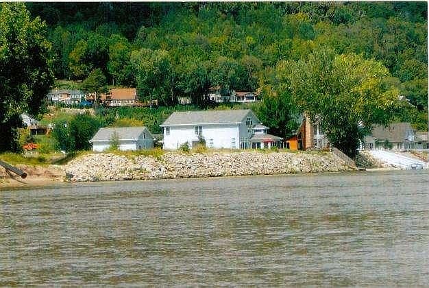 Mississippi River main channel frontage with a custom built home that takes advantage of the awesome views. Open concept great room features ceilings to 25 ft, large hearth brick fireplace, open to loft above and access to the 4 season Florida room with a cupola and outdoor patio. Master bedroom, full heated tile bath. Main floor laundry. Guest bedrooms with private baths and huge open loft on 2nd floor. 26x26 garage with 2nd floor for storage. E-Z boat dock included. All appliances included, craftsman style trim, rounded sheetrock corners, Pella windows, hardwood floors, solar tube storage closets abound.