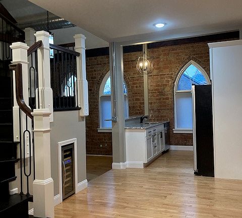 This gorgeous apartment is conveniently located within walking distance of Columbia's historic Main Street. Built in an old church, the apartment's cathedral ceilings lend elegance and spaciousness. The hardwood floors in the large living room reflect natural daylight from the cathedral windows. The downstairs bedroom features the same hardwood floors and a large closet, while a beautiful staircase leads you to the second room or office located in the choir loft. In the kitchen, the stainless appliances include the standards plus a microwave and wine cooler. A stacked washer/dryer is provided as well. This is a must-see, one-of-a-kind apartment! The listed rent is for a 12-month lease. Smoking of any kind is not allowed inside the building and pets are not allowed. The utilities for this apartment averaged $220/month over the last 12 months. Maximum occupancy is 2 people. Tenants pay all of the utilities and the landlord provides maintenance with the exception of light bulbs, batteries and water filters. The parking lot is shared by tenants and their guests. Renter's insurance is strongly recommended.