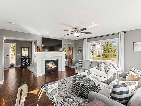 Welcome to this spacious 5-bedroom, 4-bath home with over 2,600 sq ft of finished living space, tucked away on a quiet cul-de-sac corner lot in the heart of Grimes. The main living area features a dual-sided fireplace that creates a warm and welcoming atmosphere, while the kitchen includes a pantry, granite countertops, and gorgeous marble backsplash. Off the garage, enjoy a mudroom with cubbies and remodeled 1/2 bathroom. Upstairs, you’ll find four bedrooms on one level, including the HUGE primary suite with a large walk-in closet, as well as a convenient second-floor laundry room. Bathrooms throughout the home have been beautifully updated with quartz countertops, and the lower level provides additional living space with daylight window and shiplap design fireplace area with wood mantel ideal for cozy nights or hosting guests. Enjoy a 3/4 bathroom and another bedroom with egress. Step outside to enjoy the newly built Trex deck, fenced backyard, brand-new 10x12 exterior shed, with bike trails, prairie conservation and green space just steps away. Additional highlights include a 3-car garage, access to Hwy 141 for an easy commute and placement in the highly desired DCG school district. This home is move-in ready and waiting for its next owners to enjoy, schedule a showing today! All information obtained from seller and public records.