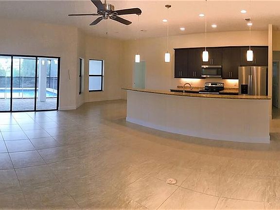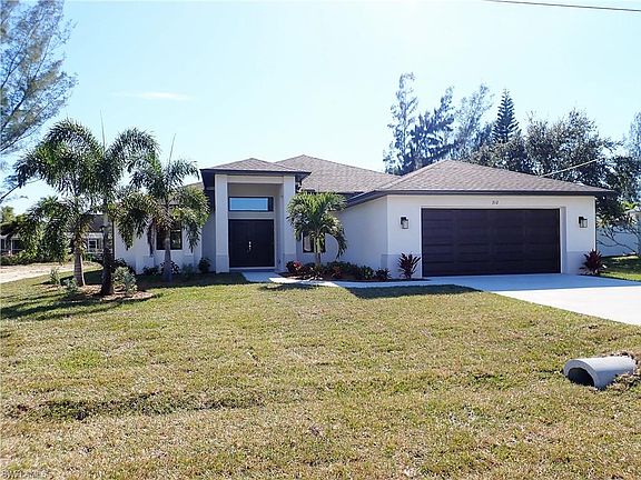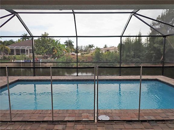 BRAND NEW POOL HOME on FRESH WATER CANAL, to be complete end of November--Located off Santa Barbara Blvd with southern exposure, all living areas plus master bedroom & rear bedroom have waterfront & pool views. This 4 bedroom, 2 bath pool home has a great room design & sits in well established canal front neighborhood. Some features include tile floors throughout with carpet in all 4 bedrooms, 1990 sq. ft. of living area, granite counters in kitchen & baths, under cabinet lighting in kitchen, inside laundry room with deep sink. Screened lanai & pool (approx. 13x26) completed with pavers. The master bedroom has sliding glass doors out to screened pool area, 2 walk-in closets, dual sinks with separate soaking tub & walk-in shower. Stainless steel kitchen appliances included: side by side refrigerator, smooth top range, dishwasher & microwave to be provided a few days prior to close. Single hung Low E tinted dual pane insulated glass windows, 16 seer air conditioning unit, 2 ceiling fans, irrigation system, floratam sod & upgraded landscaping are some other features. City utilities in place, buyer to assume balance of assessments (included in annual tax bill). Builder VA approved