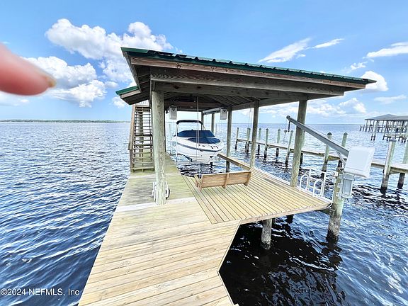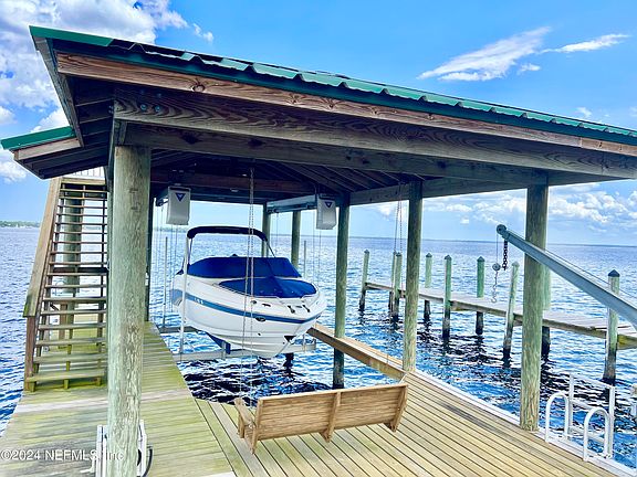 PRIVATE DEEP WATER DOCK WITH A BALCONY & 8,000 LB BOAT LIFT. The balcony gives an approx 205 degree view of the river & Doctors Lake Inlet. Private, Quiet, & peaceful community that is well maintained throughout the common area. NEW ROOF. LAUNDRY ROOM IS LOCATED DOWNSTAIRS. ROOM OFF THE KITCHEN IS CURRENTLY USED AS AN OFFICE/DEN. CEDAR AND BRICK SIDING. Upstairs MBR has three sliding doors that open to a beautiful balcony overlooking the river. SPECTACULAR SUNRISES WITH VIEWS FROM THE MASTER BEDROOM AND BALCONY, THE LIVING ROOM, DINING ROOM AND KITCHEN. Passed a Wind Mitigation Inspection for lower homeowner insurance coverage. The LIVING ROOM HAS ELECTRIC STORM SHUTTERS AND UPSTAIRS ARE MANUAL SHUTTERS. The two side windows are high wind rated. MICROWAVE AND STOVETOP REPLACED IN 2024. TILE FLOORS IN THE LIVING/FAMILY ROOM, DINING ROOM, LAUNDRY, KITCHEN, AND FOYER. WOOD LAMINATE IN OFFICE AND ALL UPSTAIRS ROOMS. HOA FEES COVER ALL YARD WORK. Appraised in April 2024 for $575,000.
