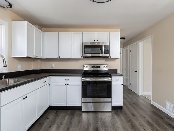MOVE IN READY! This adorable 3-4 bedroom Cape is completely renovated with new kitchen cabinets & countertops, SS appliances & vinyl flooring. New carpet throughout, updated bath and freshly painted throughout. Enclosed 3 season porch off the kitchen. Two bedrooms on the first floor! Large PT deck for summer barbeques and enjoying the warm weather. Private fenced back yard for the kids and pets! Lower level bonus room and laundry. Detached oversized 1 car garage. Natural gas heat! Convenient neighborhood close to Memorial High School, Mall of NH, S. Willow street shopping centers! Easy access to highway and amenities. Immediate occupancy.