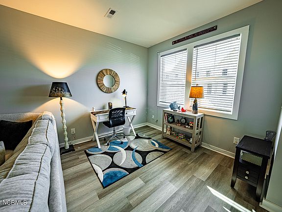 Come check out this immaculate move-in ready townhome that is practically new. Sometimes circumstances change, and in the case of this second home, you are the winner. This end unit with all the bells and whistles is now ready to wow. As you enter the front door you will find the stairs leading to the bedrooms to the left. The living room is huge with an extra area perfect as a reading nook or office. The floorplan is open with upgraded fixtures throughout and into the kitchen and eat-in dining room. Beautiful white cabinets and granite countertops compliment the mint condition LVP floors. There is a small patio beyond the sliding glass door and a privacy fence separating the buildings. In addition, there is a coat closet and a half bathroom conveniently located downstairs. On the second floor you will find a hall closet, the laundry room, and two of the 3 bedrooms. The master bedroom is huge and boasts a ton of natural light, master bathroom with a walk-in shower and, a walk-in closet. Down the hall you find the second bedroom. One amazing thing about this place is the fact that every bedroom has its own ensuite bathroom. Privacy at its finest. The stairs by the second bedroom lead to the final and third floor where the last bedroom and bathroom are located. The attic access is on the third floor as well. The wonderful amenities that Beachside Commons Townhomes will offer are well underway. Community pool, dog park, clubhouse, fitness center and, even an RV/Boat storage lot. This beauty can be your home away from home or you could live that beach life all year long since Topsail Island is just a few miles away. Conveniently located by several bases and with Jacksonville and Wilmington in either direction with a short 30-minute drive, this townhome is perfect for you and your shrimping village needs. No waiting for your new construction to finish. Avoid worrying about delays and schedule a showing today. Sellers have spent less than 5 weeks here total.