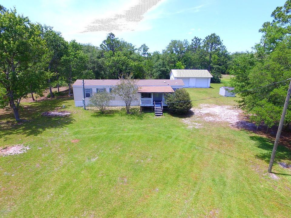 Well-maintained 16' x 60' manufactured home on 2 acres close to town & convenient to grocery, shops & restaurants at Palencia. Open floor plan with master suite at one end and guest bedroom & bthrm at the other end. Extra cabinets allow for plenty of storage. Includes 34' x 30' concrete block garage/workshop with two 12'w x 8'-6''h overhead doors & metal roof. Newer shed w/well & water conditioner also included. Zoned for top-rated Palencia Elementary, Pacetti Bay Middle, & Nease High Schools.