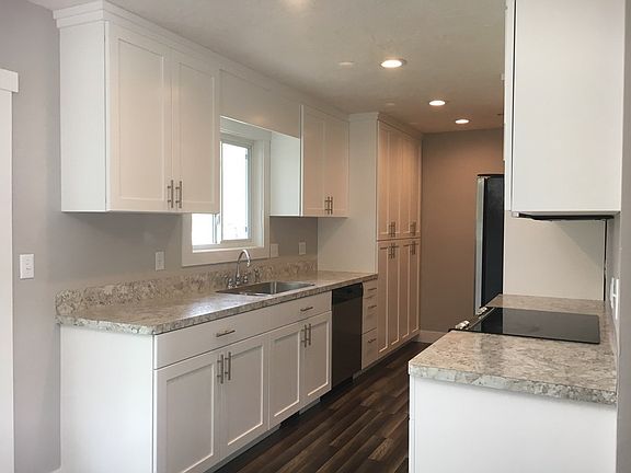 This completely remodeled 3 bedroom, 1 bath, 1 car garage home has been updated with brand new shaker style floor to ceiling white kitchen cabinets with an under-mount sink, stainless steal appliances, brand new counter tops, flooring, lighting, light fixtures, trim, texture, exterior and interior paint, exterior and interior doors, and forced air furnace. This home also has lots of room for storage which includes: 3 hall closets, a walk-in mud/laundry room set up for stacked washer/dryer, and access to crawl space. This home sits on a quiet corner city lot in a cul-de-sac, in a great location, with lots of mature trees, a fully fenced backyard, and an enclosed out-building with built-in shelves for even more storage!