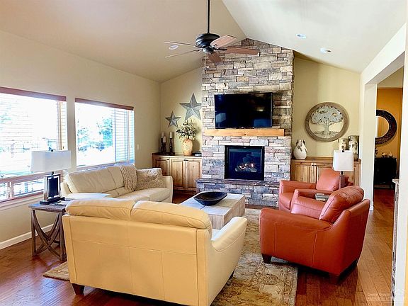 Exceptional single level home built in 2015 but barely lived in. Granite counters, wood and tiled floors, built-ins and a fireplace. Spacious master suite separated from guest rooms,wonderful views of the water feature from the living and dining area. Enjoy the patio or take a short walk to the sports center. All Eagle Crest amenities included.
