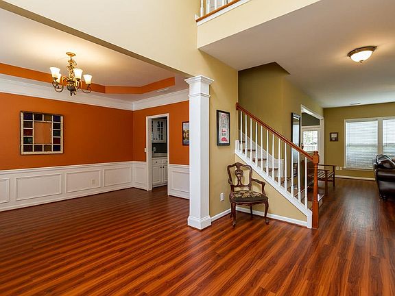 Great location- Open floor plan, Bright kitchen, Trey ceiling in Dining and Master, Cherry hardwoods under the vinyl plank on the main level, (Water proof, Pet Friendly flooring) All bedrooms upstairs, Large bonus room, Formal living room could easily convert to an office, Lots of storage. No carpet in this house- easy care for flooring throughout. Pool and Tennis Courts in the neighborhood!