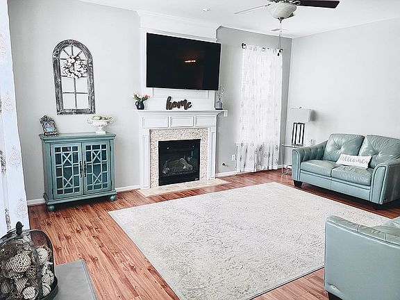 • Living Room: Fireplace, Floors-Laminate, Ceiling Fan