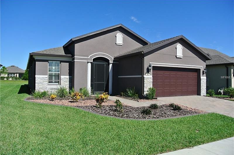 MUST SEE beautiful custom built, DESIRABLE MARTIN RAY home with over $80k in upgrades. The gourmet kitchen includes a built-in microwave oven, counter-top gas range, stainless steel appliances, granite counters, large island with cabinetry base, upgraded cabinets, under and overhead cabinet lights, crown molding, and solar tube for natural lighting in both the kitchen and guest bath. This beautiful home offers an open floor concept with ample living space perfect for entertaining. The living room features a 3-panel pocket door for natural lighting and opens onto the large screened-in lanai. Huge master bedroom with hard wood floor. Master bath has an enlarged zero-entry walk-in shower, dual vanities and large walk-in closet. The enclosed lanai has an extended 300+ sqft for your year long comfort. An oversized 2 car garage has storage or golf cart area. Other features include; recessed canned lighting, plantation shutters, ceiling fans, porcelain tile floors. There is an extended berm behind home, maintained by the HOA, for additional outdoor space. This meticulous well maintained home is walking distance of the community clubhouse. This exclusive 55+ guard-gated community of Del Webb Orlando located in Ridgewood Lakes has a resort-style clubhouse filled with exciting amenities and a full-time activities director to plan your day. Donât miss out on this 2 bed, 2 bath, a must-have home priced significantly below new construction models with similar upgrades. Call to schedule your private viewing today!