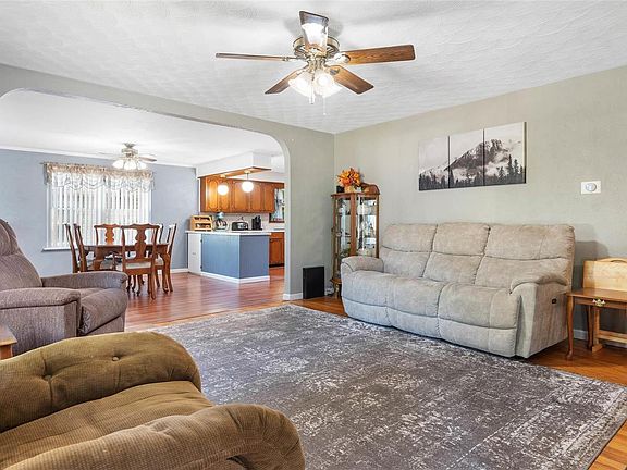 Looking for a great full brick ranch outside of town with 3 Car Garage space?! This home boasts an open concept floor plan with a spacious living room with original hardwood floors & lots of natural light. The spacious kitchen has a large prep peninsula that doubles as a great serving space, tile backsplash & gas range along with an adjacent dining area that is perfect for holiday gatherings. Two bedrooms have hardwood floors with the third bedroom recently being refreshed with new paint & new laminate flooring. The full bathroom has a tiled tub/shower surround and new vanity! The unfinished basement offers lots of storage space and has a bonus room. Enjoy grilling outside on the patio overlooking this private backyard that backs to trees. This home offers a 1 car detached garage and a 2 car oversized detached garage (24x28) perfect for any car enthusiast or workshop! New sump pump (2023), New Water Heater (2024)! Great location just outside of town!