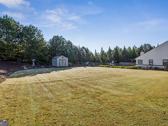 Prepare to be wowed by this incredible home that perfectly blends prime location with unbeatable outdoor living. You'll be just minutes from sought-after schools, charming downtown Ball Ground, and have easy access to shopping, restaurants, and major highways. But the real star of the show? The backyard oasis! Already huge and flat, it's now been taken to the next level with OVER $42,000 in RECENT UPGRADES. We're talking an extended driveway and patio with coverage, a massive NEWER COVERED PATIO complete with fans for year-round enjoyment, NEWER exterior paint, UPDATED lighting, NEWER front and back porch columns, BEADBOARD and NEWER storage SHED-plus so much more! This isn't just a yard; it's an absolute dream for any activity, from entertaining to playing, highlighted by gorgeous, year-round blooming flowers and lush landscaping. And don't forget the beautiful, updated rocking chair front porch that greets you! Step inside to discover an ideal layout for modern living. The bright and spacious living area is anchored by a kitchen built for functionality, boasting a large central island, tons of storage space, and easy flow. A perfectly sized laundry room is handily located on the main floor. When it's time to unwind, the upstairs primary bedroom offers a private sanctuary, featuring the desired dual vanity, a separate shower and tub setup, and an expansive walk-in closet. This is a true gem-come see the best backyard in the neighborhood!