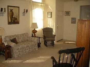Senior gated golf course community with clubhouse, swimming pool and tennis courts, close to shopping, medical and transportation. New laminate floors throughout most of home. Handicap accessibility products installed. Removable handicap ramps at front and back doors. Kitchen features corian counter tops, free-standing stove and built-in microwave. Refrigerator stays. Partially fenced backyard bordered with privacy hedges. 2 bedrooms, 2 baths. Approximately 1022 sq. ft. Built in 1999.