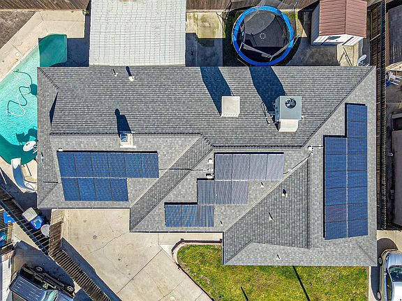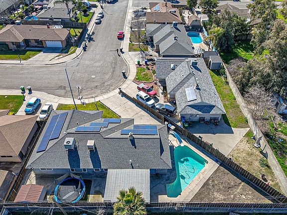 Wonderful home with a pool and plenty of upgrades including granite counters in the kitchen, stainless steel appliances, crown molding in the living room and the separate family room, a remodeled hallway bathroom with dual vanities and beautiful tile in the shower/tub. The flooring is all laminate and tile so no carpet herePLUS Plantation Shutters throughout! Other great features include dual pane windows, ceiling fans, a whole house fan and a covered back yard patio. There is additional space near the pool and off the covered patio area plus a dog run on one side of the home.