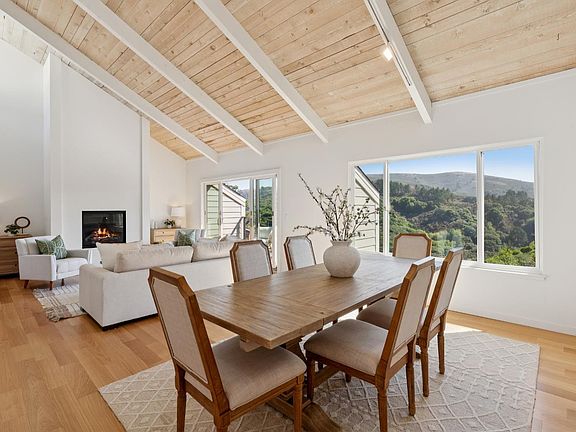 Stunning, stylishly remodeled home in Marinview featuring light-filled, open spaces with two bedrooms, two versatile bonus rooms, and two and a half baths. Situated on a quiet cul-de-sac and perched with tranquil, expansive views overlooking the Golden Gate National Recreation Area, this attached residence brings natural beauty to your doorstep. The living and dining room showcases soaring, open-beamed ceilings, gleaming hardwood floors, and a gas fireplace, while large windows and sliding doors bathe the space in natural light and open seamlessly to the view deck. The chef's kitchen delights with maple cabinetry, quartz countertops, and premium appliances including a five-burner induction range, plus a breakfast bar and informal dining area that opens to a peaceful, porcelain-tiled entry courtyard. The lower level houses two bedrooms, both bonus rooms, and a well-equipped laundry room. The spacious primary suite features a luxurious bath and private deck. A two-car garage completes the home. Perfectly positioned with trailheads nearby and close to Tam Valley's shopping, restaurants, and top-rated schools. Downtown Mill Valley is just minutes away. Easy access to Highway 101.
