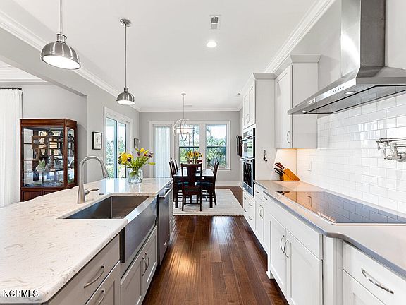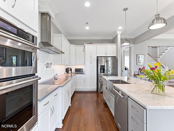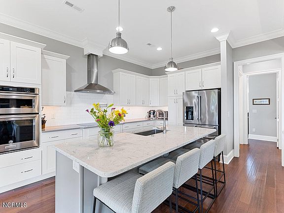 Welcome home to premier, custom living in Wilmington, NC. This exceptional, like-new ''green home'' is located in the booming community of Scotts Hill Village, just off Scotts Hill Loop road in the north end of town. This coastal inspired home was meticulously built by Ellison Builders Inc to provide the homeowner the ultimate in energy friendly efficiency, including an Energy Start 3.0 certification. Open cell foam insulation was used in the walls and ceiling to create and airtight building envelope, for the ultimate in comfort. A HERS rating below 60, according to the builder. As you enter the home you will be greeted by a spacious vaulted foyer, which opens into an inviting living room equipped with a decorative coffered ceiling. Stunning details abound in this gourmet kitchen with quartz countertops, stainless steel Kitchen Aid appliances, an induction stove with pot filler, and soft close cabinetry doors. Boasting four bedrooms and four bathrooms this home has something for everyone. There are 2 bedrooms including the Master on the first floor (one being utilized as an office currently). The master bath provides a generous walk-in shower as well as his and her closets with ample space. Upstairs you will find 2 additional bedrooms with en suite bathrooms, an upstairs den, as well as a Bonus room. The laundry/ mud room offers a chic barn door closure. Located just off the dining room you will find your outdoor oasis, with a lush fully fenced in backyard that provides an expansive covered patio in addition to a screened in porch. I am certain the backyard will provide countless hours of entertainment for family and friends while relaxing and entertaining all year long. Located just 15-25 minutes from the heart of Mayfaire and Wrightsville beach you can have everything your heart desires with shopping, movies, dining and more.