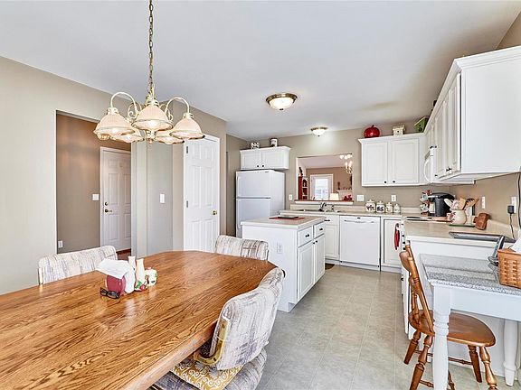 Welcome to this spacious 3 bedrm, 3 bath villa w/carefree living. Step in the foyer & you are greeted w/ hardwood flooring & an open concept. To the right you will find the breakfast rm which boast a bay window that illuminates the kitchen & breakfast rm. The kitchen offers white cabinetry, all appliances (refrigerator included), pantry & center island. The main flr laundry offers a washer & dryer that will stay with the home. You will appreciate the vaulted ceiling in the living and dining areas. The gas frpl compliments the living rm & the additional bay window adds warmth to the rm. Step out back on the spacious deck & enjoy your morning coffee. The primary bedrm features an en suite w/ walk-in shower & double bowl vanity. This area also offers a spacious walk-in closet. The main flr is completed w/ a full bath and 2nd bedrm. Enjoy the finished walk-out LL that boast a spacious rec rm, 3rd bedroom & full walk-in bath. Plenty of storage space in this meticulously maintained home. Location: Ground Level, Suburban