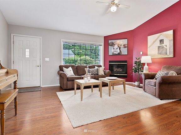This home did not flood! All on one level, this spacious condo in the heart of Nooksack has vaulted ceilings for that light and bright feel, 2 bedrooms, 1.75 bathrooms and private, fenced-in back yard. Move-in ready: kitchen has newer appliances, eating space, and easy access to new deck for outside enjoyment. Private backyard, large community space, plus attached 1 car garage. Spacious primary bedroom has coved ceiling & own bath with new flooring & toilet. Separate laundry room offers extra storage. All appliances included - moving in will be a breeze! Just 20 Min to Bellingham or 15 minutes to Lynden.