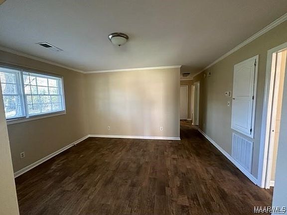 Three Bedrooms, Two Bathrooms, Dining Room, Living Room, and a Laundry Room. From the front you enter into the living area that is a good size and adjoins another room that could be your dining room or another living area. It adjoins to an open kitchen that is L shaped. If you enter from the covered carport you enter into the kitchen. The three bedrooms are off the hallway and the master has a bath of its own. The yard is exceptionally large and is fenced in the back. It has attached storage as well.