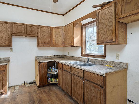 You will be pleasantly surprised by this home. It is 1050 . Nice covered front porch. Nice real hardwood floors in most of the home. First floor features a nice size living room. A master bedroom with a half bath and a walk-in closet. A dining room. A full bath with a tub and shower. kitchen With a pass-through to the dining room. And laundry room off to the side with a back door leading to a A large chain-link fenced backyard. storage building. And also has alleyway access in the back. The upstairs features two bedrooms one of which does not have a closet. And an attic fan.