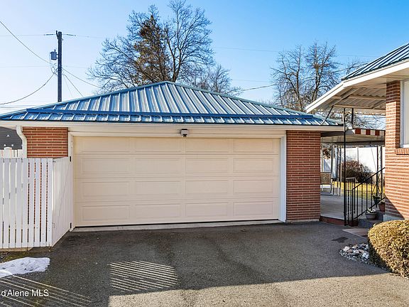 Midtown CDA Charmer and first time on the market! Stepping into this well maintained brick home, you will see the beauty throughout starting with the custom solid wood front door, open concept living room and continue through the immaculate vintage kitchen! Featuring 3 bedrooms (one non-conforming), 2 bathrooms, a .20 acre sized lot, a detached 2 car garage, PLUS an attached workshop with wood burning stove, 2 sheds, and a fully landscaped and fenced yard, this home is a must see! The partially finished basement features a large living room, third bedroom and extra storage space. Location could not be better being within walking distance to shopping and restaurants, a short drive to the hospital, Lake Coeur d'Alene or downtown CDA! No CCR's or HOA, a low maintenance metal roof, AC and more!
