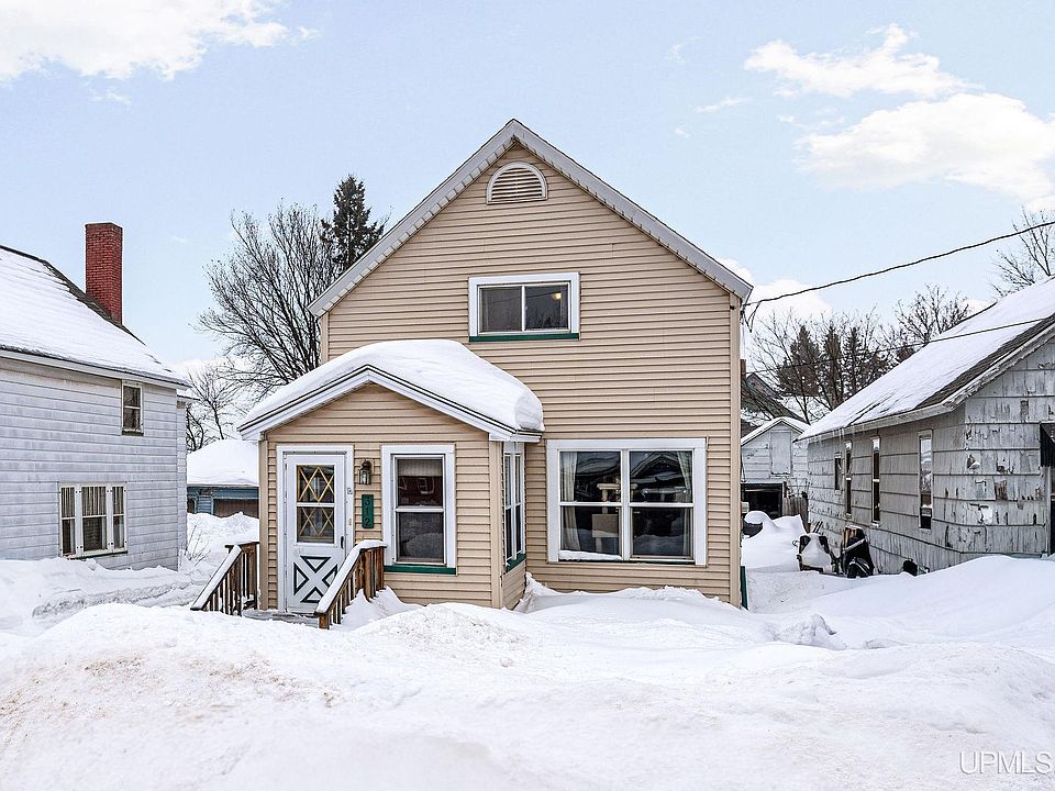 Spacious 1.5 story move in ready home in the city of Ishpeming. This home features two second floor large bedrooms and a full bath. The main floor has an updated kitchen with lots of storage in the light oak cabinetry, another full bath, large living and dining areas as well. The basement has tons of storage space, a large room that could be a non-conforming third bedroom or a large family room, a 3/4 bath off of the cedar electric sauna with stone pebble flooring. Central AC for those warmer Michigan days we can get. Nice back yard with storage shed and a one car detached garage with remote opener as well. Vinyl sided for low maintenance exterior; this home is ready for its next owner!