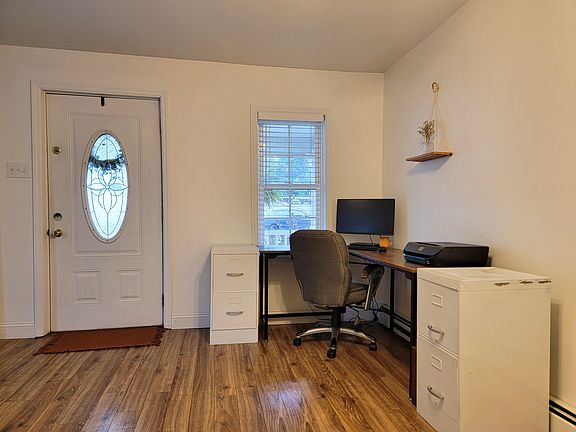 This home is warm and inviting with a comfortable and cozy living room, kitchen with plenty of counter space, pendant and recessed lighting, and breakfast bar for extra seating, an adjoining dining area, and a 1st floor powder room. Upstairs, you'll find three bedrooms, including a main bedroom with access to the full bathroom with double bowl vanity and linen closet. The basement offers finished space for a family room or den, plus a 2nd half bath/laundry room. There is an attic for storage, accessed on the 2nd floor hallway. Enjoy outdoor living on the rear deck that overlooks the parking area, 1-car garage and workshop, and spacious, private yard that makes the perfect nature getaway. You won't want to miss seeing this wonderful heart-warming home! One year contract, renews month-to-month after the first year.