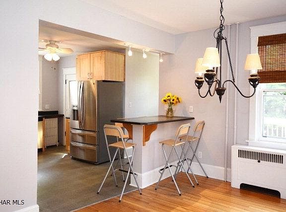 HIGHLY MOTIVATED SELLER!! This is the quintessential Hollidaysburg brick home that everyone wants. There is so much character and charm inside these brick walls. Beautiful hardwood floors, brick fireplaces, window seats, leaded glass windows, pocket doors, and cute second floor covered porch. Modern Ikea kitchen with pantry and breakfast bar. Large, bright sunroom with so many possibilities. Large bedroom suite on third floor with pretty views of the borough. Off street parking. Large rear deck. Recent painting with decorator grey in kitchen and dining room gives the interior an updated and modern look. Only one block to the downtown Hollidaysburg Diamond and all of the great activities this vibrant community has to offer. You will be so comfortable in this home!