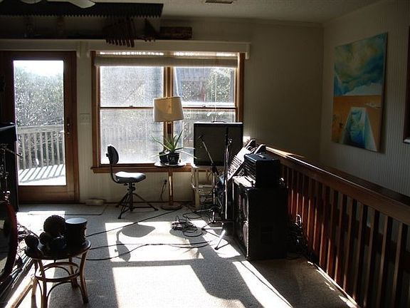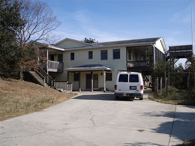 SPACIOUS HOME WITH MOTHER-IN-LAW SUITE Don't let the age fool you! This is a charming home on a lovely wooded Southern Shores lot that will work well as a primary home, a second home or a rental home. Some elbow grease and sprucing up and you have a great value. The upper level features two large great room areas, one with a wood burning fireplace, the other a huge sunroom with many windows and lots of light, a remodeled kitchen with a breakfast bar, a master bedroom, a 12 x 24 second bedroom with a hall bath that is virtually a master, a laundry room, a 10 X 24 screened porch that can be accessed from the bedroom, a large sundeck and 10 x 10 roof-top deck with a tiny ocean view. The interior stairs lead to a mother-in-law apartment with a good sized living area, one bedroom, a full bath and a kitchenette. There is also a separate ground level entry to this area. The 15 x 24 ground level workshop storeroom is heated and partially finished and could fill so many needs for the hobbyist, gardener or musician. Newer HVACs installed 2002 and 2005. And there is plenty of room for a pool. So many possibilities!!