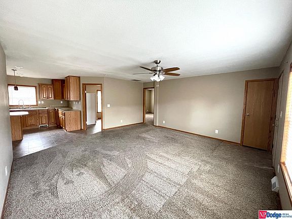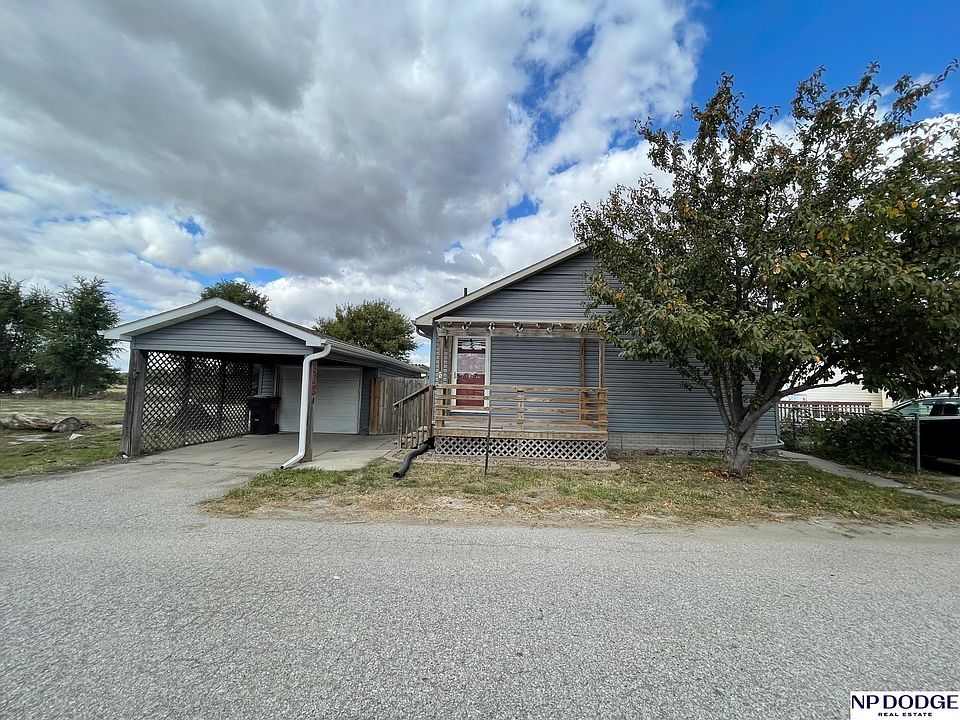 WOW! Did you see the size of that house? Ranch style home with over 2200 sq ft, 4 bedrooms and 3 full bathrooms. The floorplan has so much to offer with an open layout, primary bedroom suite separate from than other bedrooms, and a storage closet off family room. Great kitchen with center island, lots of oak cabinetry and a huge pantry that could even be used as an office or craft room. Cute patio with pergola in the backyard. Vinyl siding and 1 car detached garage with carport. Property is a modular home on a foundation (not mobile home). Sold AS-IS. Seller is a licensed agent in the state of Nebraska.