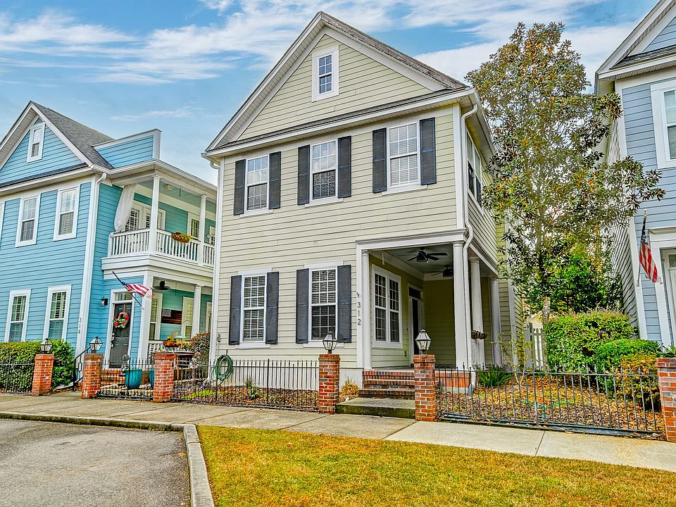 This cool home with great vibes is back on market due to no fault of the Seller. Welcome to one of Summerville's favorite neighborhoods. The desirable White Gables community is ready to welcome you. From the moment you arrive, the Charleston Single-style exterior invites you to step inside and discover the charm within. A welcoming front porch sets the tone as you enter to find a thoughtfully designed home featuring attractive LVP flooring, crown molding, abundant natural light, and an open floor plan that effortlessly combines style and functionality. To the left of the entryway, a spacious dining room or flex space offers versatility to suit your needs. Continuing down the hall, you'll uncover the heart of the home--a delightful galley-style kitchen that's as beautifulas it is practical. With ample white cabinetry, stainless steel appliances, a chic stone backsplash, and a breakfast bar with seating, this kitchen is made for culinary creations and entertaining alike. The kitchen flows seamlessly into the inviting family room, complete with a cozy gas fireplace, creating a warm and comfortable gathering space. Upstairs, the primary suite awaits with a walk-in closet and an en suite bathroom designed for relaxation. Two additional bedrooms and a full bathroom complete the second floor, providing plenty of space for family or guests. Step outside to enjoy the fenced backyard with turf, featuring a patio for outdoor dining or unwinding. Surprise: there is no lawn to cut. It has easy to maintain indoor/outdoor in the backyard. A detached two-car garage adds convenience and additional storage options. Come be a part of this well established family community with amenities that include walking paths, tennis court, fishing ponds and a swimming pool. White Gables is truly a LowCountry lifestyle. Located just 3.7 miles from historic downtown Summerville, 5.5 miles from I-26, 6.8 miles from the shopping and dining of Nexton Square with a grocery store, restaurants and drug stores located less than a mile away; this home offers both tranquility and accessibility. Don't let this exceptional property slip away. Schedule your showing today.