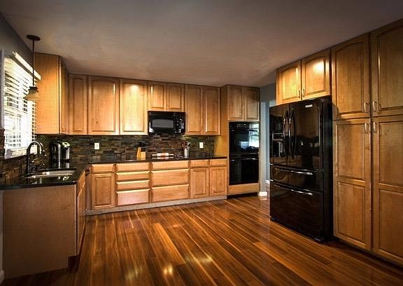 Desirable ranch sitting on little less than .25 acre with open floor plan on a finished basement. Many updates to include new completely remodeled kitchen,new cabinets,new appliances,nice new hardwood floors,new carpet in basement, new a/c and furnace.Main level of home consists of a open floor plan to kitchen,family room and dining area that lead out to fully screened in large back deck.Also on this level is a master suite and 2 more bedrooms with full remodeled bath. Basement consists of a large recreation/family room(new carpet) with 2 additional bedrooms/office/bonus rooms and a full bath with separate laundry room. Garage is a 13x11 and used as workshop. Close to shopping, restaurants, parks and Fritz farm. Easy to show.