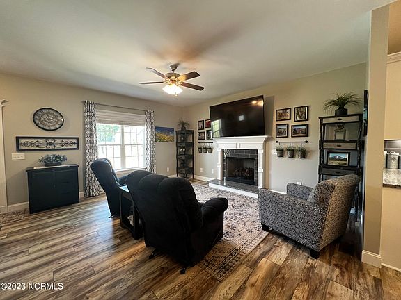 Acreage! Perfection! Showings start 6/22/23. Immaculate home & Beautiful setting! Quality-Built in 2021 and sitting on 1.74 acres, this Better than new, 3 B/R + large fin bonus home has room for all! Rocking chair front porch welcomes you & your guests! The greatroom is bright & open , has a gas F/P & beautiful pergo flrng that flows thru the kitchen, dining & laundry. This kitchen is the heart of the home. So many cabinets and the counters are granite, large center island, stainless appl including fridge, designer backsplash, a large, walk-in pantry, & very spacious dining area. Downstairs primary ste is sure to please with its designer touches, ensuite bath w/double vanity,oversized shower & large Walk-in closet! Even the Laundry room is Special &... washer/dryer remain w/home! Upstairs, two spacious b/r's + bonus provide lots of space for kiddos and/or guests! Bonus room is huge! Step out onto the screened porch and into nature's beauty! The best part is it belongs to YOU! 1.74 acres with immaculate raised garden area, new storage shed and a portion is fenced for your convenience. SJAFB & Goldsboro 20 mins away, Raleigh, Wilson are super easy commutes! CBA schools. WELCOME HOME! Showings start 6/22/23