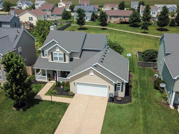 Beautifully constructed & maintained 2-story Newline Construction with a full basement in pristine condition. You will be greeted by the beautiful hardwood flooring, angled walls in the entry, pillars at the dining room and an open concept kitchen with center island, eat in area & pantry. The spacious living room offers a handsome brick wood burning fireplace with gas starter and mantel. The laundry room features additional cabinets and a storage closet. Upstairs, the master features a vaulted ceiling and shelving, an awesome view of the commons area, spacious walk in closet, double vanities, built in linen, jetted tub and a private walk in shower. The basement is full and partially finished, including a family room, bonus room (that could be the fourth bedroom), and two storage areas. A new ac was installed in July, 2018 and water heater in 2015. Over-sized two car garage with a bump out for additional storage, utility sink and additional storage in the pull-down attic.