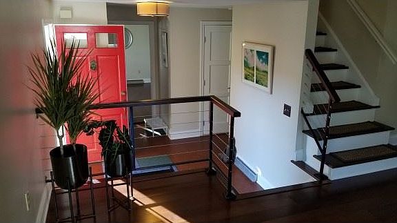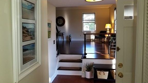 The search is over! Many custom updates including steel fabricated stair railings, bamboo flooring, renovated baths and newly re-faced double fireplace. The cherry and granite kitchen has a collapsible breakfast bar and an elevated fireplace next to the eating area with new stone surround extending to the ceiling. Updated lower level family room that opens to the back yard. Polished stone patio in the back that opens to a play friendly back yard with mature trees providing shade. Northeast Elementary is right up the street with a footpath from there to Dewitt Middle School.