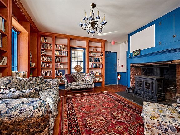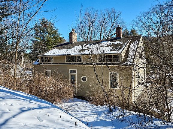 Beautifully maintained antique colonial nestled in the hills of Rowe, near library and town center with a picturesque view of a pond and waterfall. This charming home features five bedrooms and five full baths, a three-season enclosed porch, wood flooring and architectural details, antique murals, and updated kitchen with granite countertops and cherry wood cabinets. Next to the house is a two-car detached garage and garden shed. The 2.2 acre property offers ample space for gardening, nature-viewing, or quiet reflection. Outdoor recreational opportunities around, with all that Rowe has to offer - trail access, swimming, downhill and cross-country skiing, and more.
