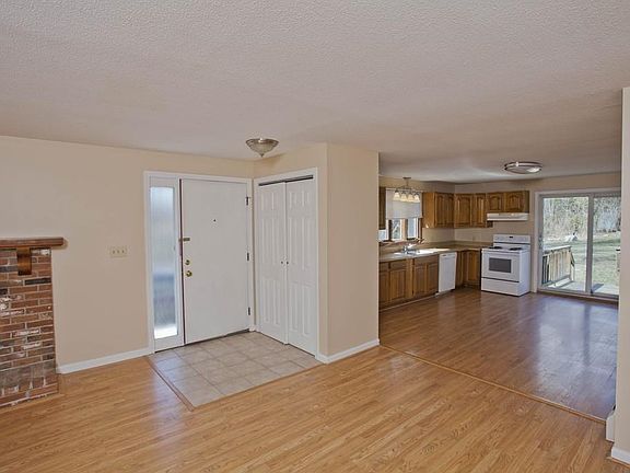 This charming ranch-style house is simple and sweet, and it's just waiting for you to call it home. As soon as you enter into the living room, you'll be welcomed by the beautiful brick fireplace that sets ambiance for a quiet and relaxing evening or for hosting family and friends. The bay window lets in lots of sunshine that brightens up the whole house. All of the three bedrooms feature brand-new, plush carpeting in a neutral tone that is sure to complement your décor. The spacious eat-in kitchen has plenty of stunning cabinetry and it opens up to a deck that overlooks the large backyard full of greenery - another great space for entertaining. Laundry on the first floor makes keeping up with housework a breeze, and the replacement windows throughout, new back half of roof and newer septic tank all help keep maintenance costs low.