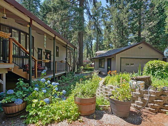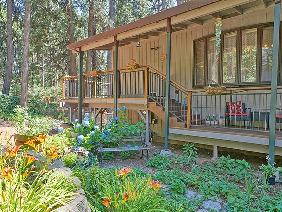 Lovely home with fabulous gardens, in the beautiful pines and just minutes to shopping and awesome schools. As a bonus, the sweet neighborhood is so special, and the homes are beautiful. This home sits back off the main road giving you the feeling of privacy and serenity. The almost 2100 square foot home has 3 bedrooms, 2 baths and a stunning living room with beautifully crafted wood ceilings. An amazing kitchen, with awesome gas cook top, affords all the cooks in the house to be together and an open floor plan offers plenty of space to entertain large gatherings as well. The main floor has a large bedroom with ample closet space and doors to the deck, kitchen, living room and bathroom. Downstairs is the master bedroom, with large walk-in closet and doors to the gardens. Additionally downstairs, there is the 3rd bedroom, laundry and den with private entrance. The location is 15 minutes to Placerville, an hour to South Lake Tahoe, minutes to Sly Park Lake with hiking and biking trails.