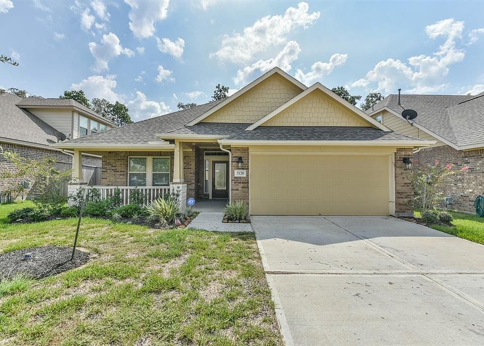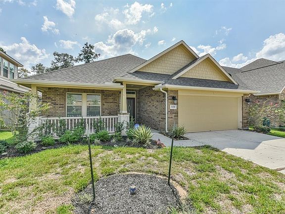DID NOT FLOOD DURING HARVEY per seller. Less than two years old and it's is absolutely stunning. Large covered front porch that would be great for porch rockers. Private wooded area behind so no back neighbors. Dedicated Study that is huge and could be used as a 4th bedroom, if needed. Tile throughout wet areas and LR which makes it great for cleaning and decorating. Kitchen has gorgeous honey cherry cabinets. Over sized island and lots of prep room. Open to the huge Family Room. Master is separate from secondary bedrooms which makes for great privacy. Oversized covered back patio in this quiet little community with NO MUD TAX! Buy cheaper than you can rent. See today!