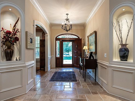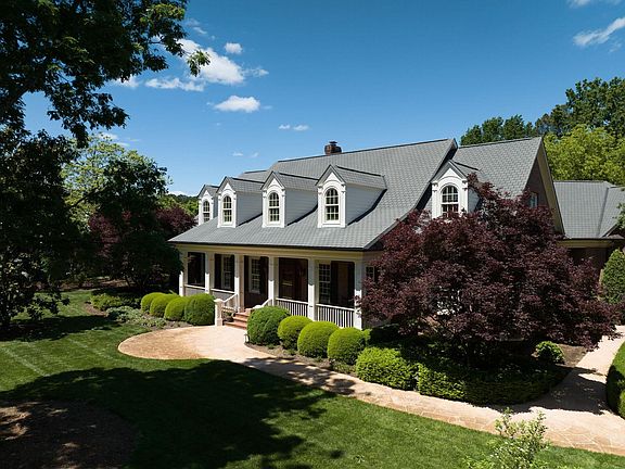 Elegant brick one and a half story with covered front porch nestled on a gorgeous, 1.15-acre lot - the gracious entry is flanked by the light-filled living and dining rooms and flows into the spacious family room/kitchen which overlooks the back porch and terrace below - the gourmet kitchen features oversized island with stainless steel Wolf/GE Monogram appliances and adjoins the breakfast nook and sunroom with 18' ceilings - the spa-like MBR retreat includes fireplace with tray ceiling, whirlpool tub with separate shower/his-n-her vanities + closets - 10' ceilings (9'/up), arched doorways, wainscoting, window pediments/transoms and multiple fireplaces further enhance the generously proportioned spaces - upstairs features two bedrooms, study (or BR#6) and rec room - laundry room off kitchen with easy access to 3-car garage - the park-like setting is encircled by wrought-iron fence and Japanese Privet hedge offering maximum privacy - tinted concrete driveway with expansive parking area - Tennessee flagstone walkways/patio - excellent schools - sale/leaseback preferred - exceptional property!
