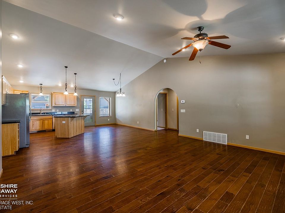 Oversized heated two-car garageRv parkingRich wood floorsVaulted ceilingsAbundance of natural lightGranite countertops